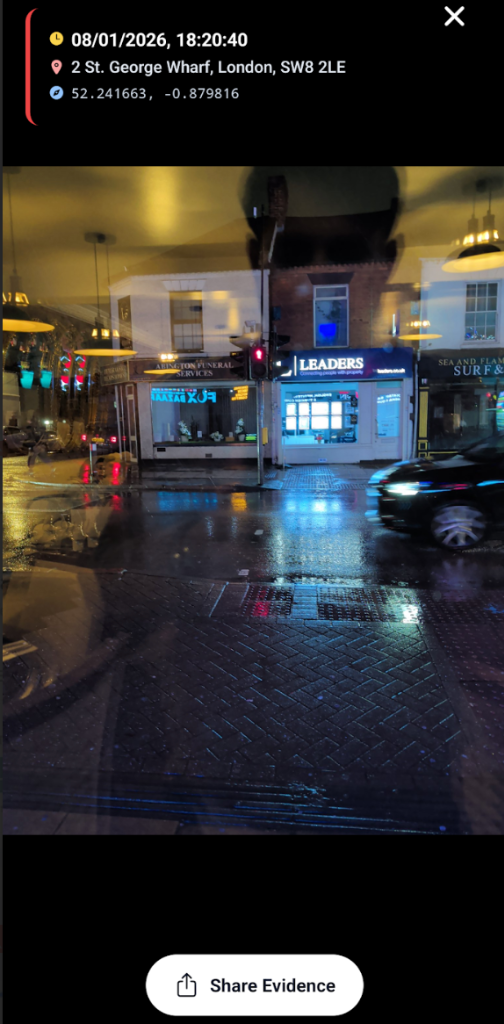 Verifiable Photos & Notes. Every photo and note is watermarked with GPS coordinates and timestamp. Evidence that stands up to scrutiny.